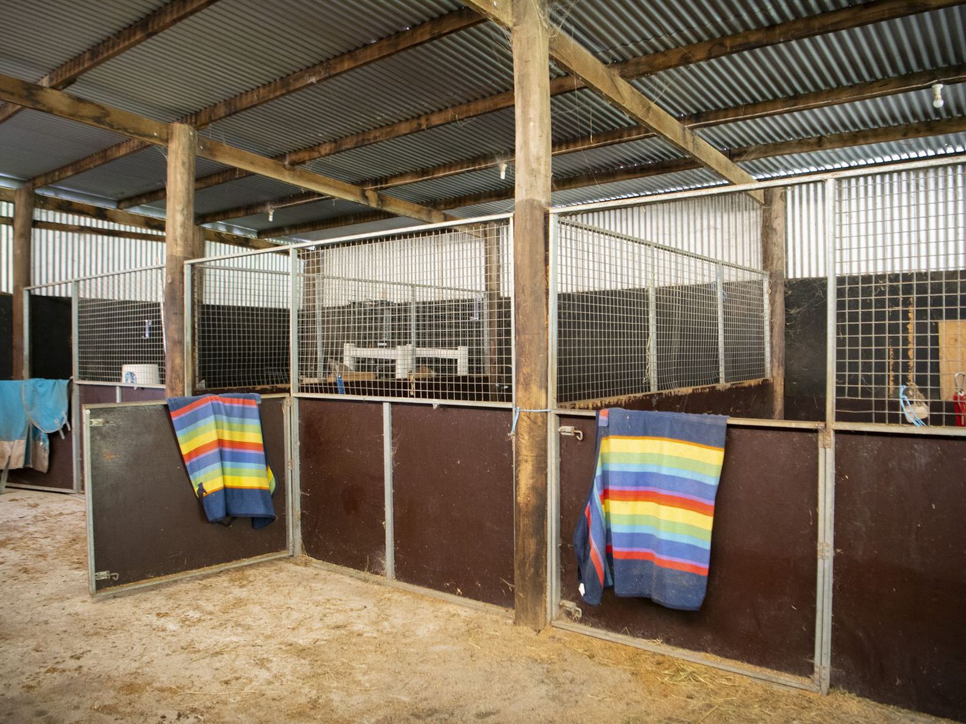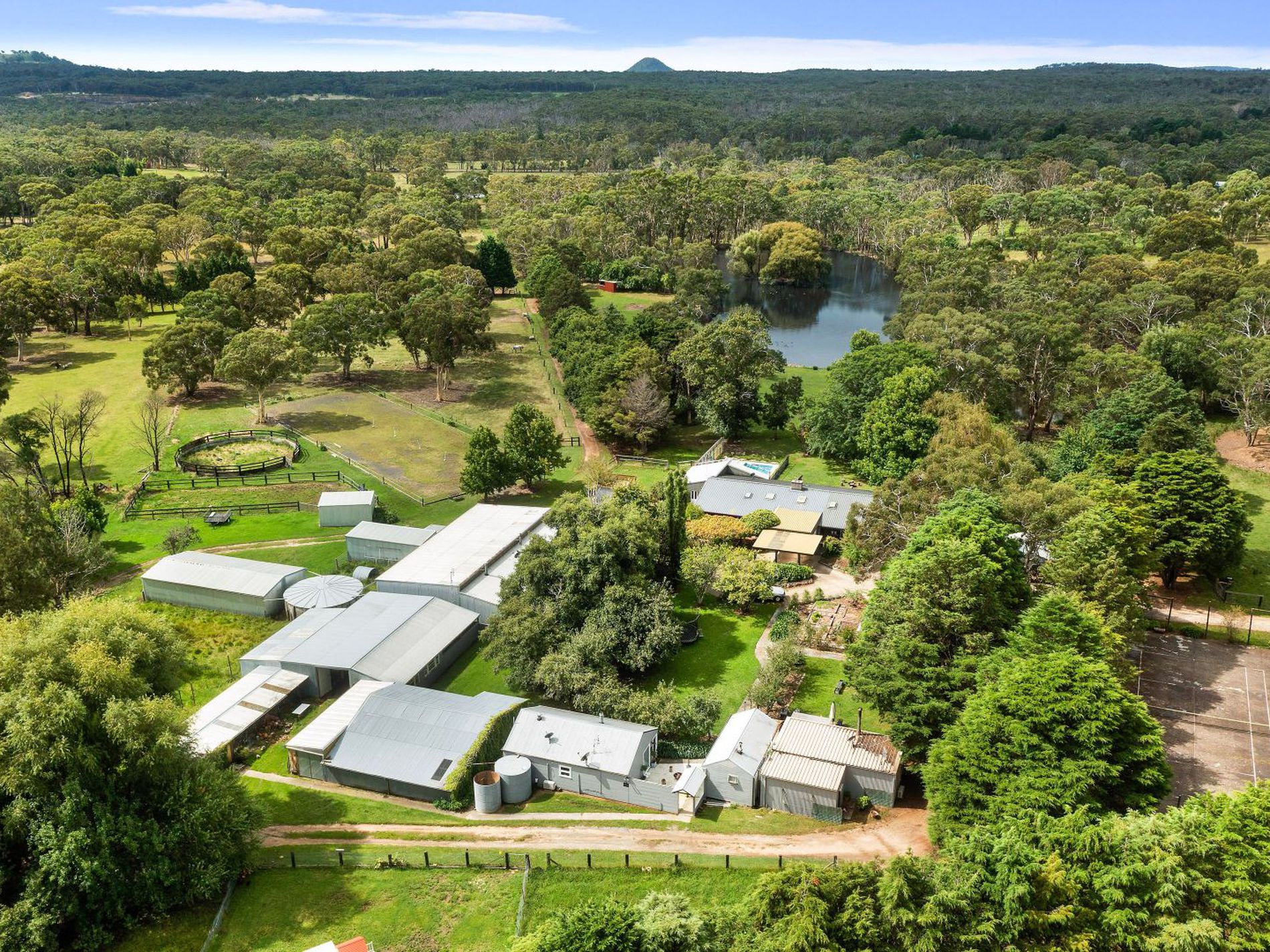 For equine pursuits, the main stable complex provides 5 boxes, with capacity for additional stabling in the existing farm sheds. A dressage arena and round yard sit ready for refurbishment, forming the basis of a professional-grade training environment. A massive barn with two combustion heaters offers flexible space for recreation, events or overflow guest accommodation (STCA).
